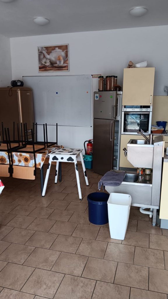 Büros | Fernsehraum, 4 Duschen und 4 WCs | 2 Betreuerzimmer mit zwei Betten, eigener Dusche und WC |